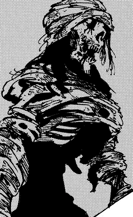 Anaon looks like a skeleton wrapped in bandages.
