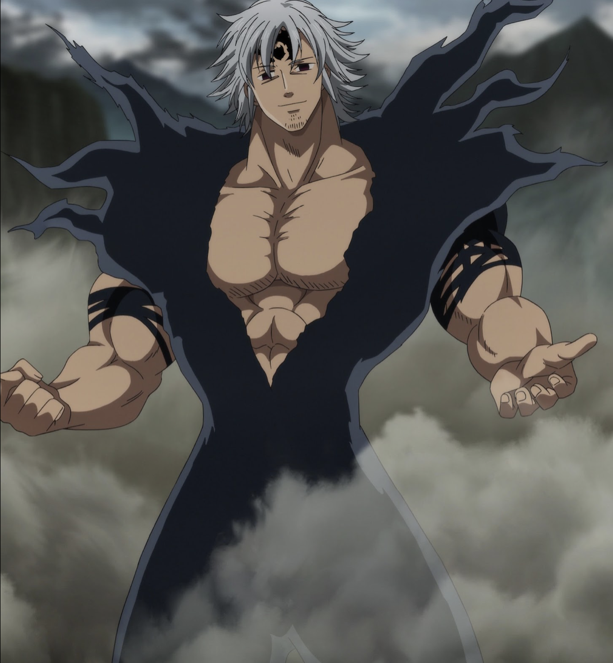 After absorbing the Commandment of Truth, Estarossa's appearance remains mostly unchanged except that his forearms and legs are covered in darkness, and he gains a spiked circle made of darkness on his back. Once he absorbs the Commandment of Reticence, he transforms for a second time with his entire body covered in darkness similar to that of Meliodas' Assault Mode.Personality